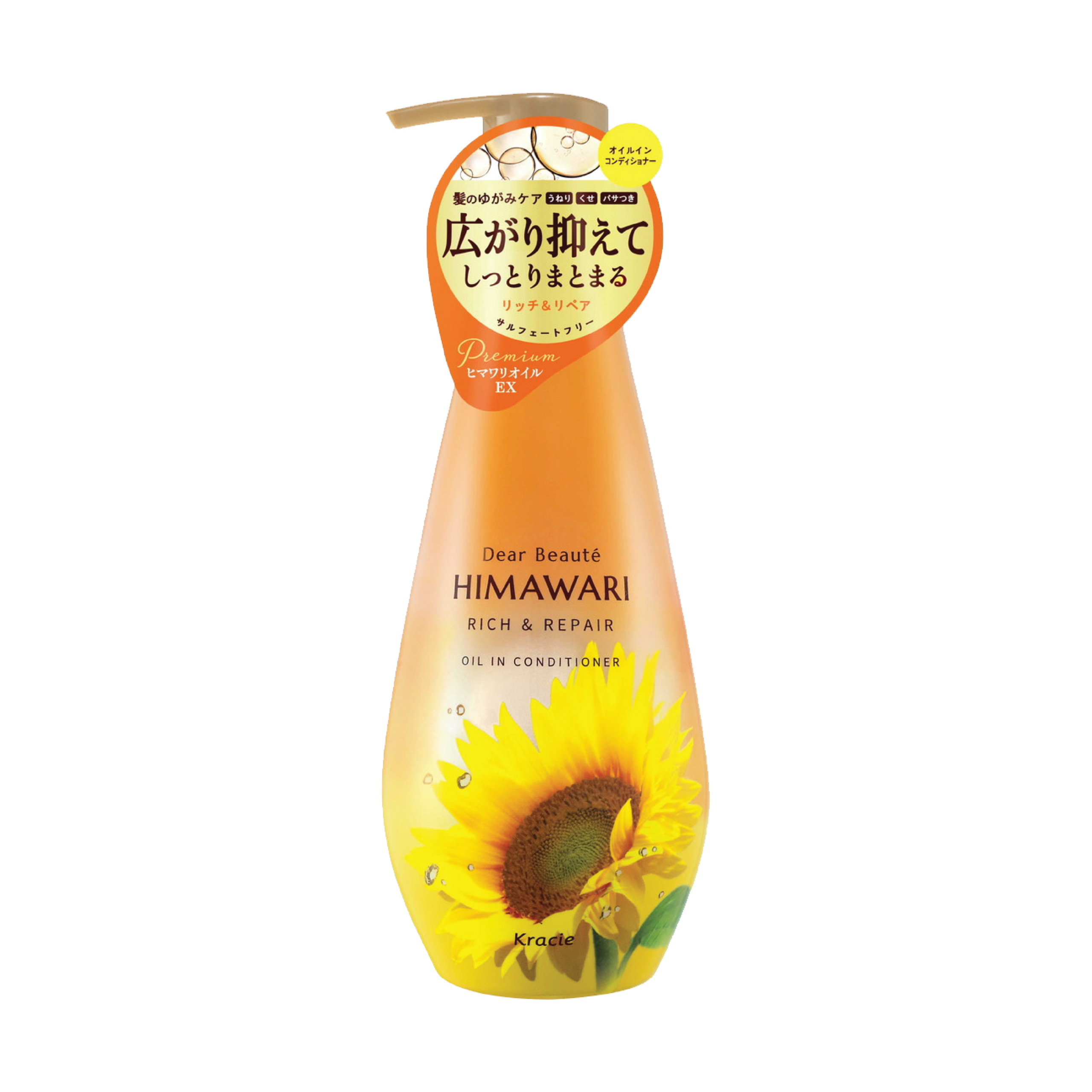 Kracie Dear Beaute HIMAWARI Rich & Repair Oil In Conditioner – nuôi dưỡng và phục hồi mái tóc khô xơ, giúp tóc suôn mượt, vào nếp và rạng rỡ theo phong cách chăm sóc tóc chuẩn Nhật Bản.